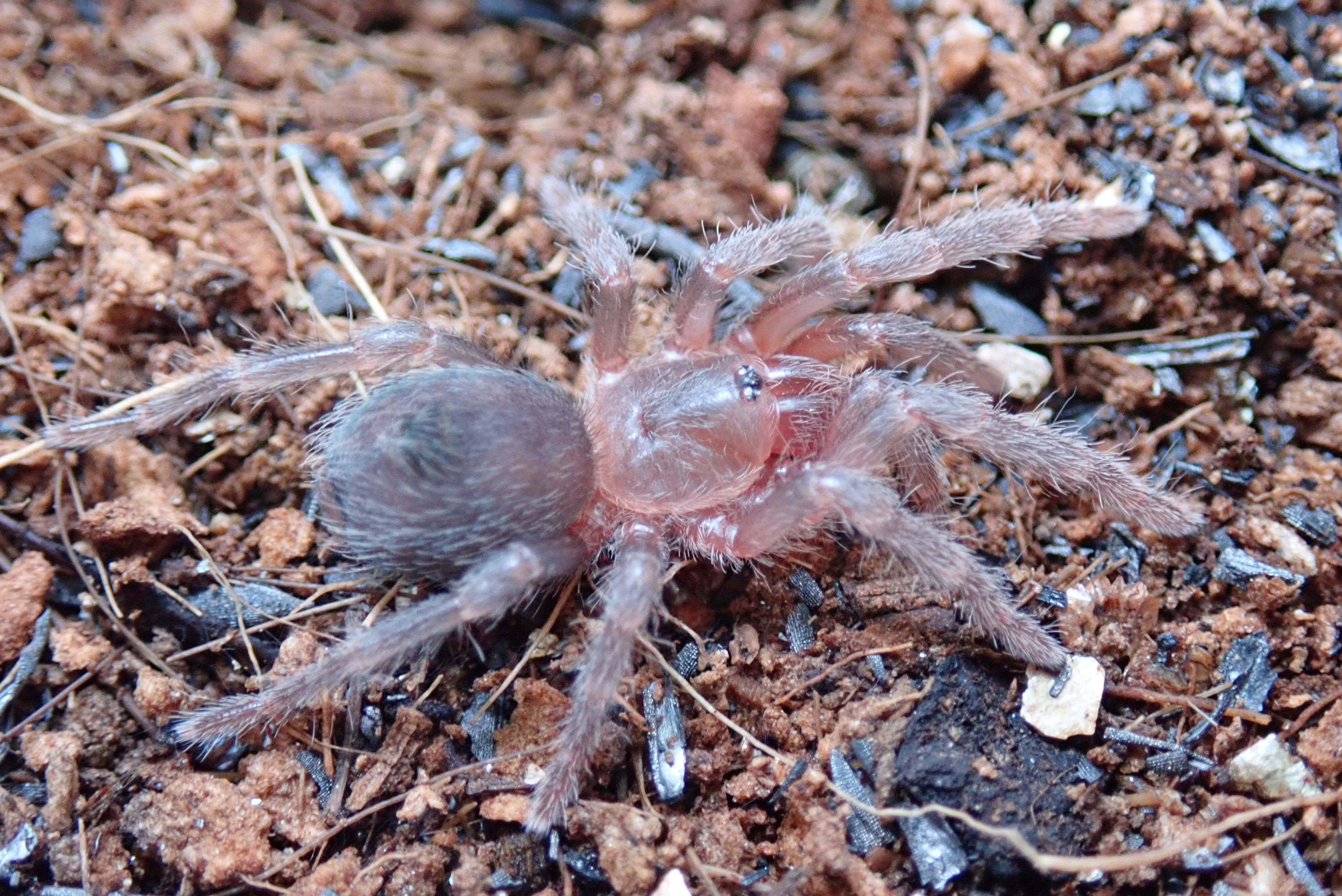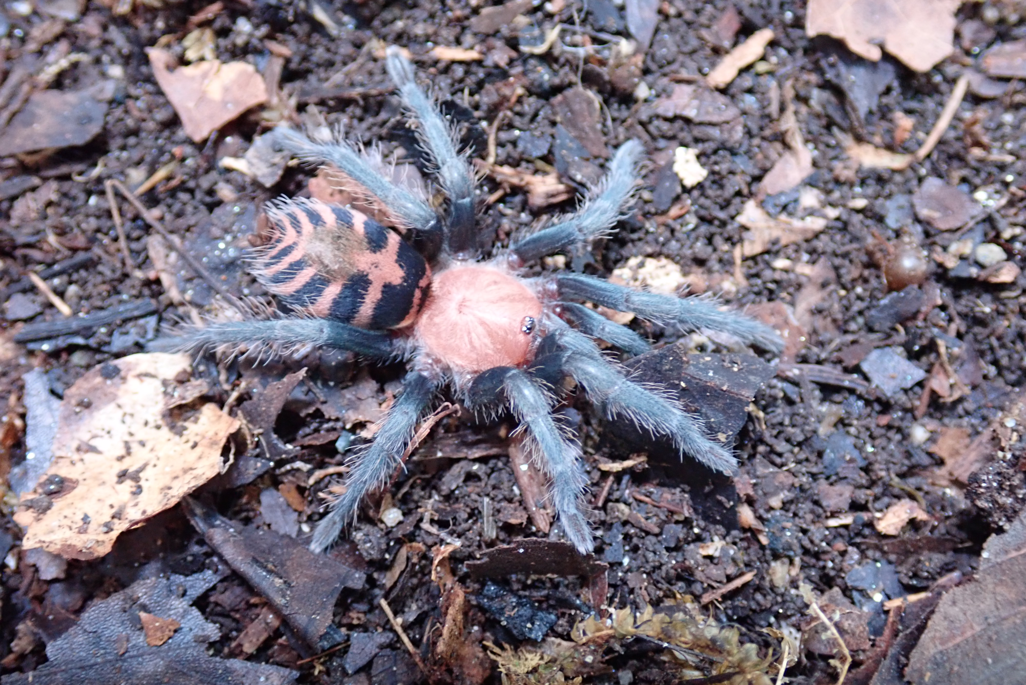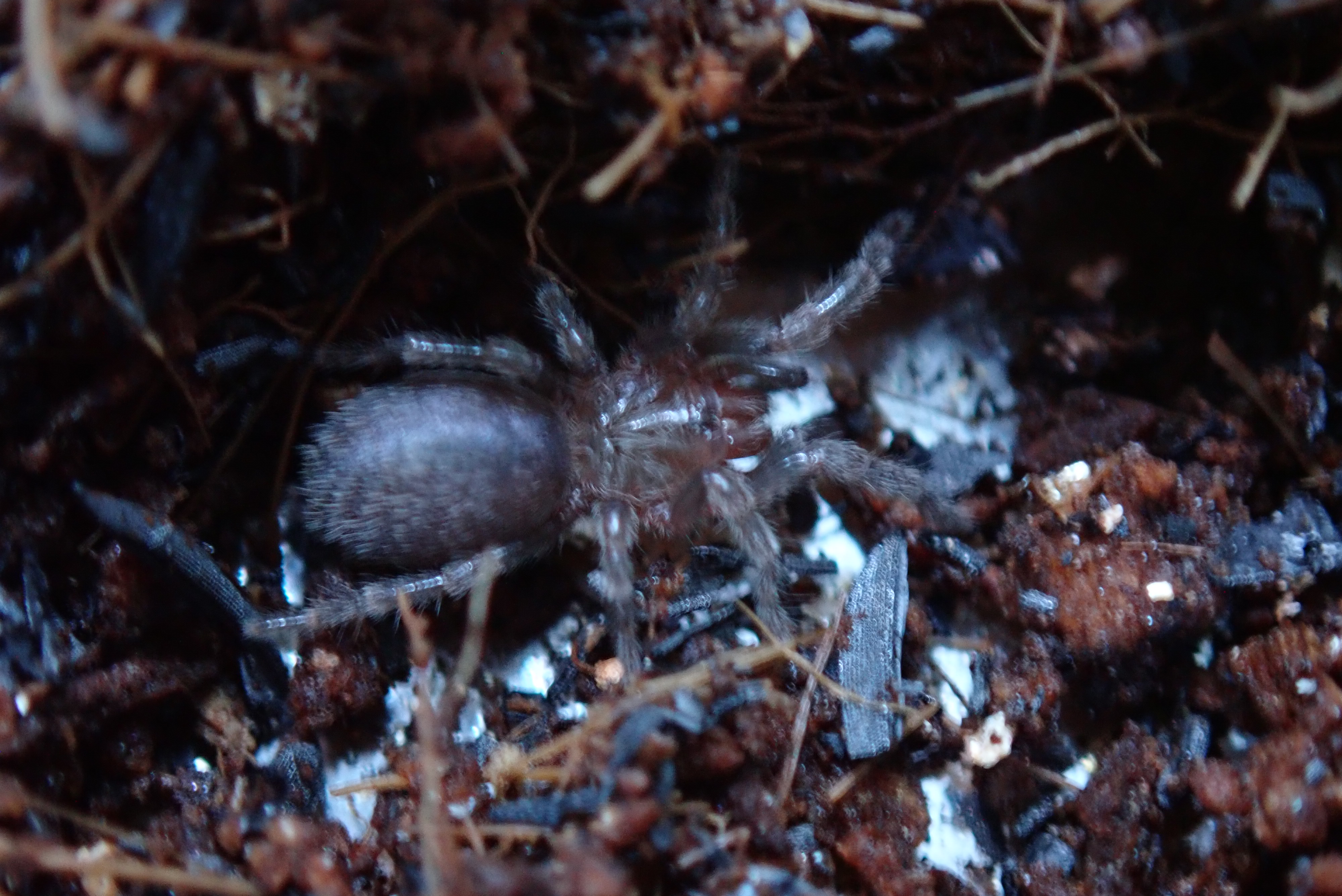 | アンティクナ・ヴァジャダレシィ 26/04/17撮影 タイプ産地はペルー中部フニン県アンデス高地Ticlio付近、本種が属の記載時に 4689mの標高で採集され、オオツチグモ科として最高標高記録を更新した種。 冷涼・湿潤または雲霧混じりの高山帯森林または草本域で、低酸素・低温という環境ストレスの高い場所に適応 |