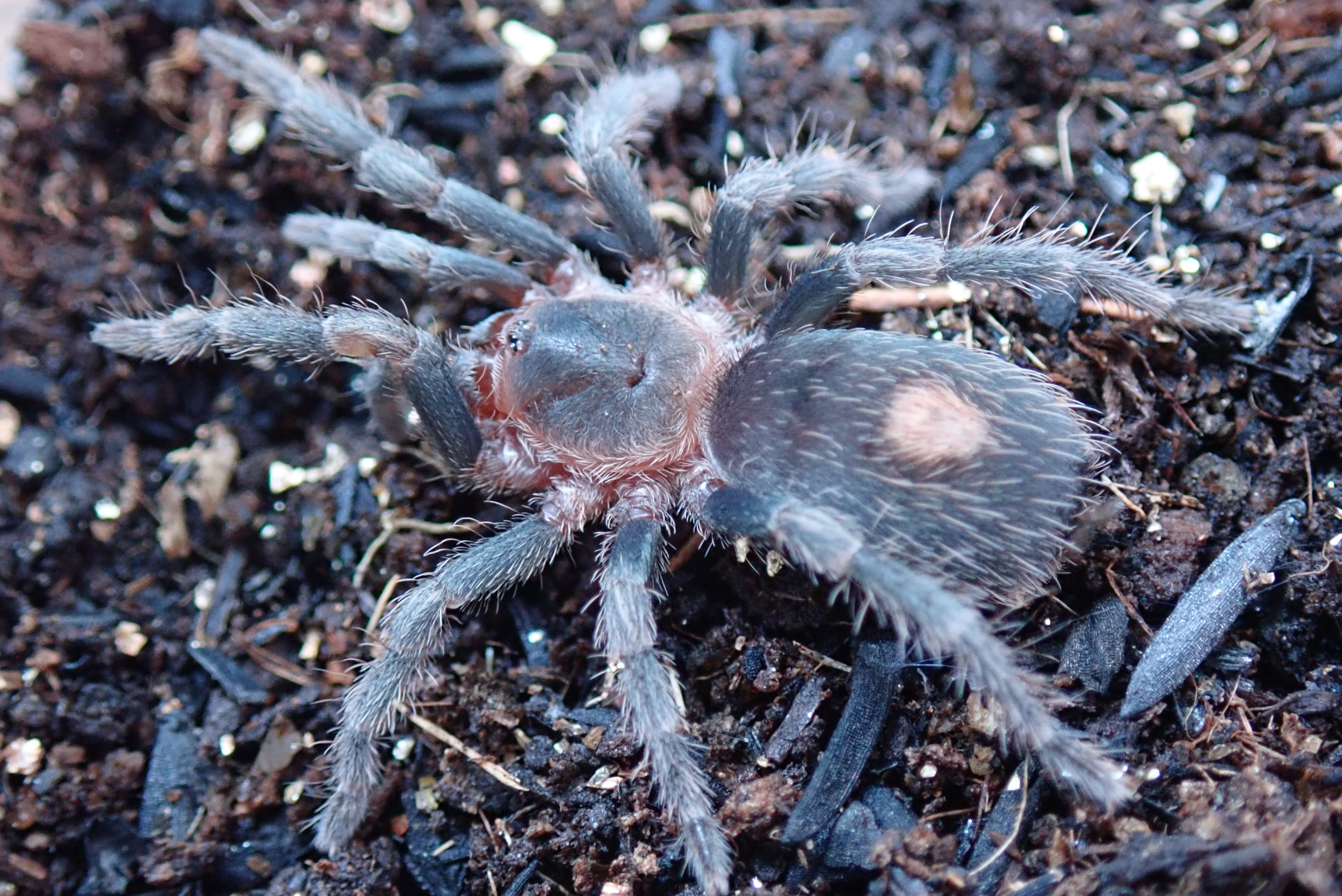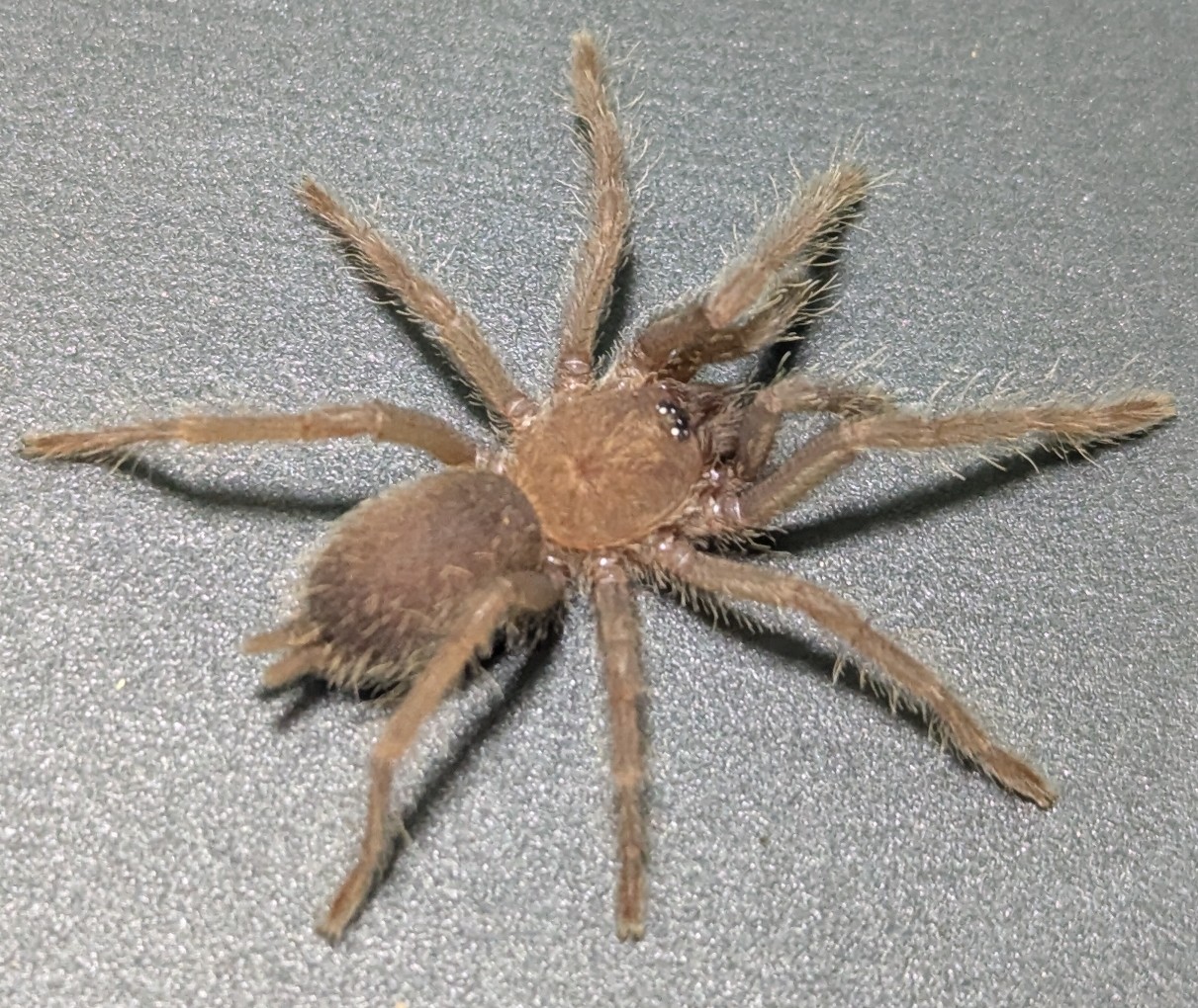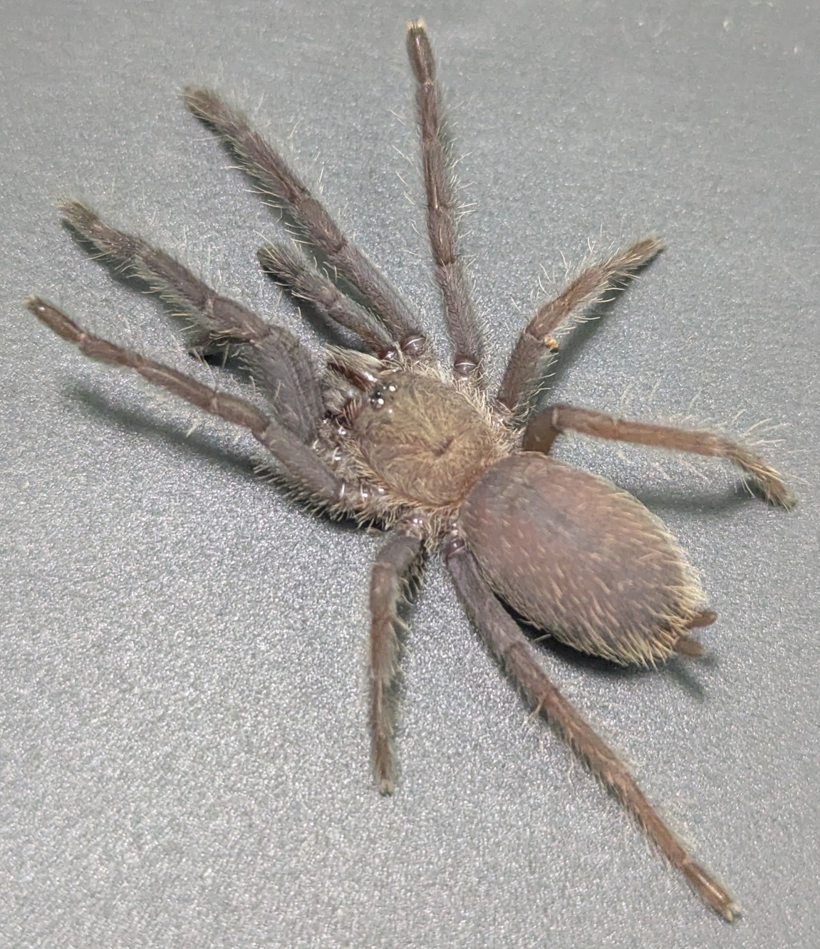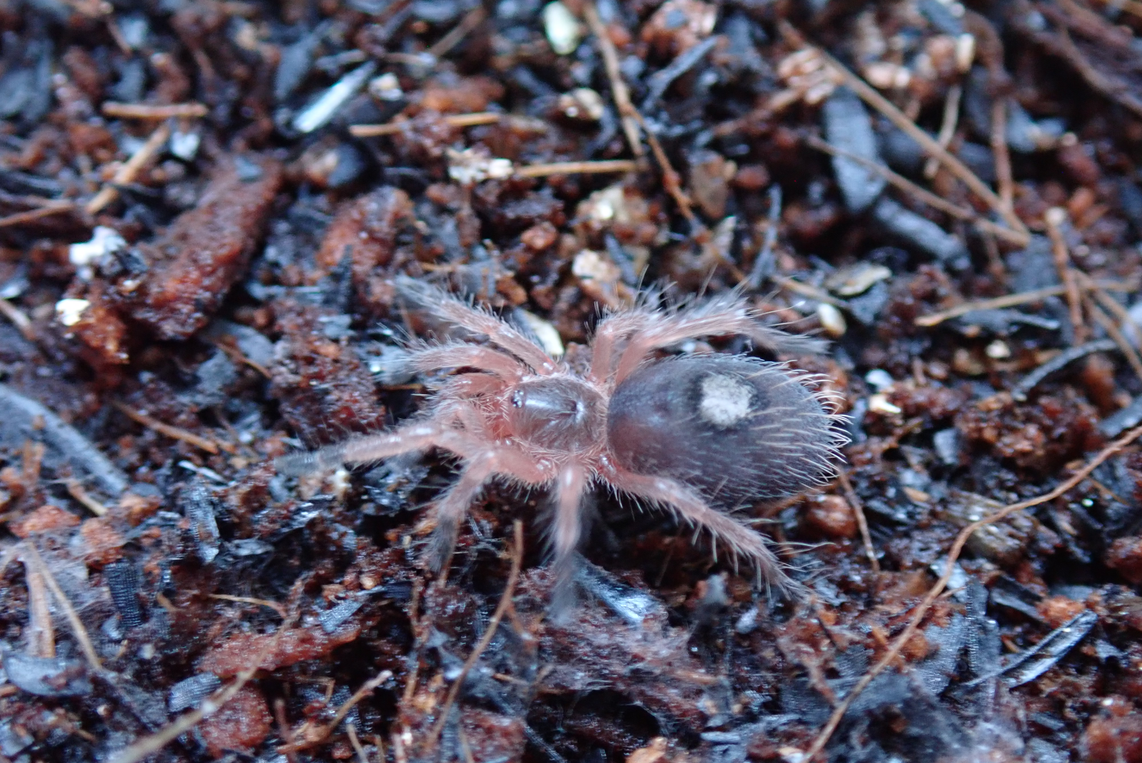 | アンティクナ・ヴァジャダレシィ 26/04/17撮影 タイプ産地はペルー中部フニン県アンデス高地Ticlio付近、本種が属の記載時に 4689mの標高で採集され、オオツチグモ科として最高標高記録を更新した種。 冷涼・湿潤または雲霧混じりの高山帯森林または草本域で、低酸素・低温という環境ストレスの高い場所に適応 |