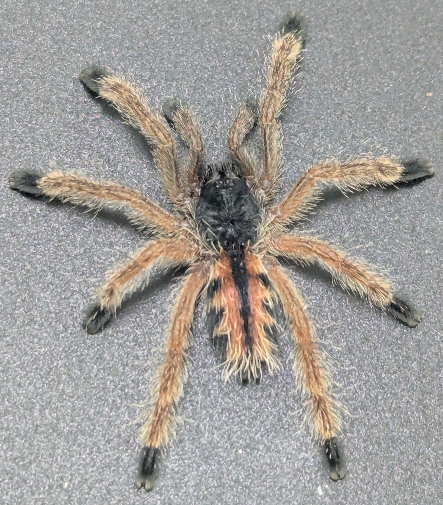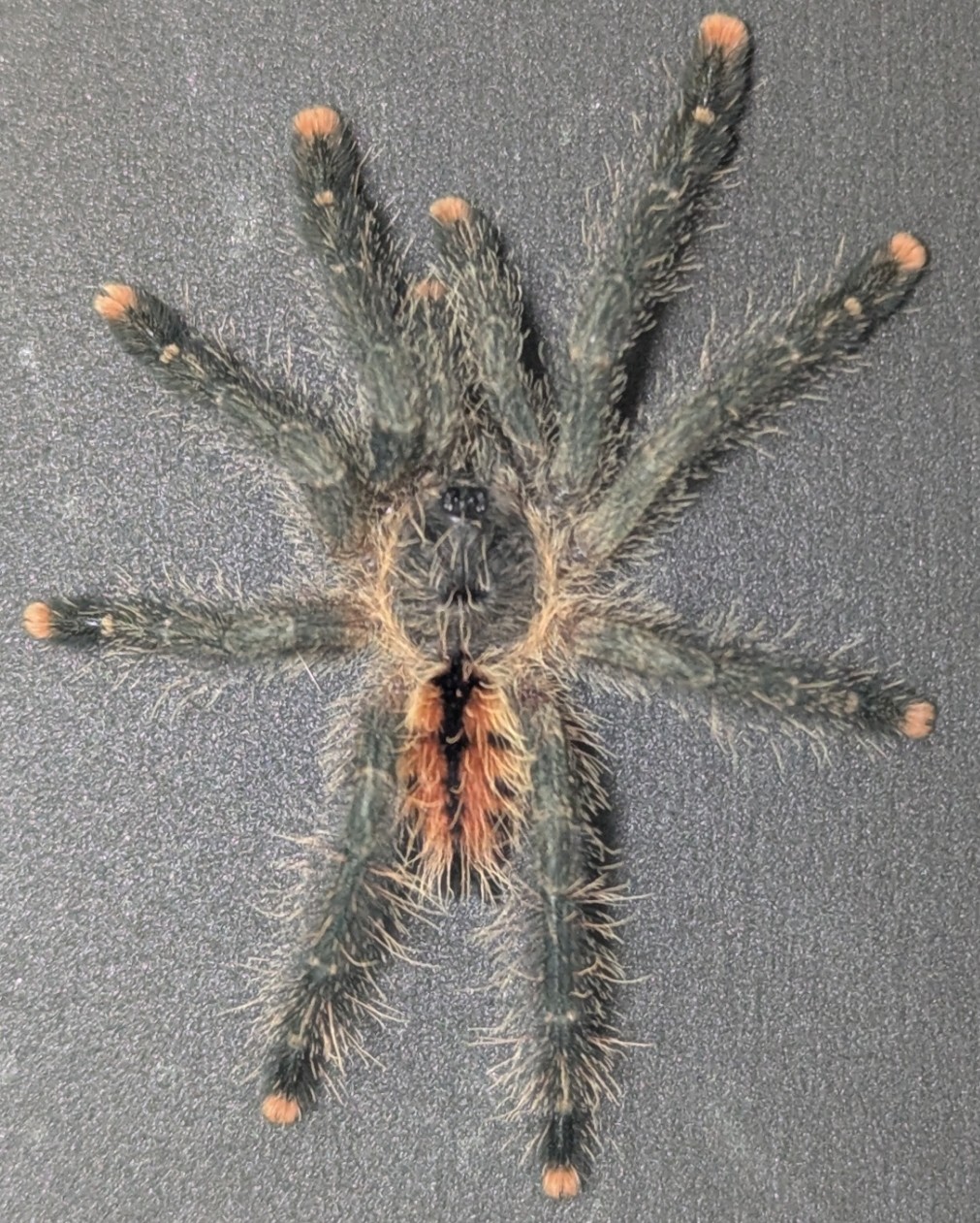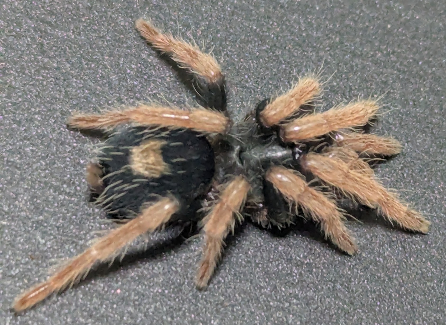| アカプルコレッドニーメキシコ産 旧アニータ 墨西哥巨人?膝 墨西哥? 頭胸部と脚部に入る橙色の模様が特徴的な種。 Brachypelma hamorii 記載後に、メキシコよりCITES許可を得て輸入された個体群。飼育下で長期維持されてきた系統とは異なる、産地情報の明確な個体。 |