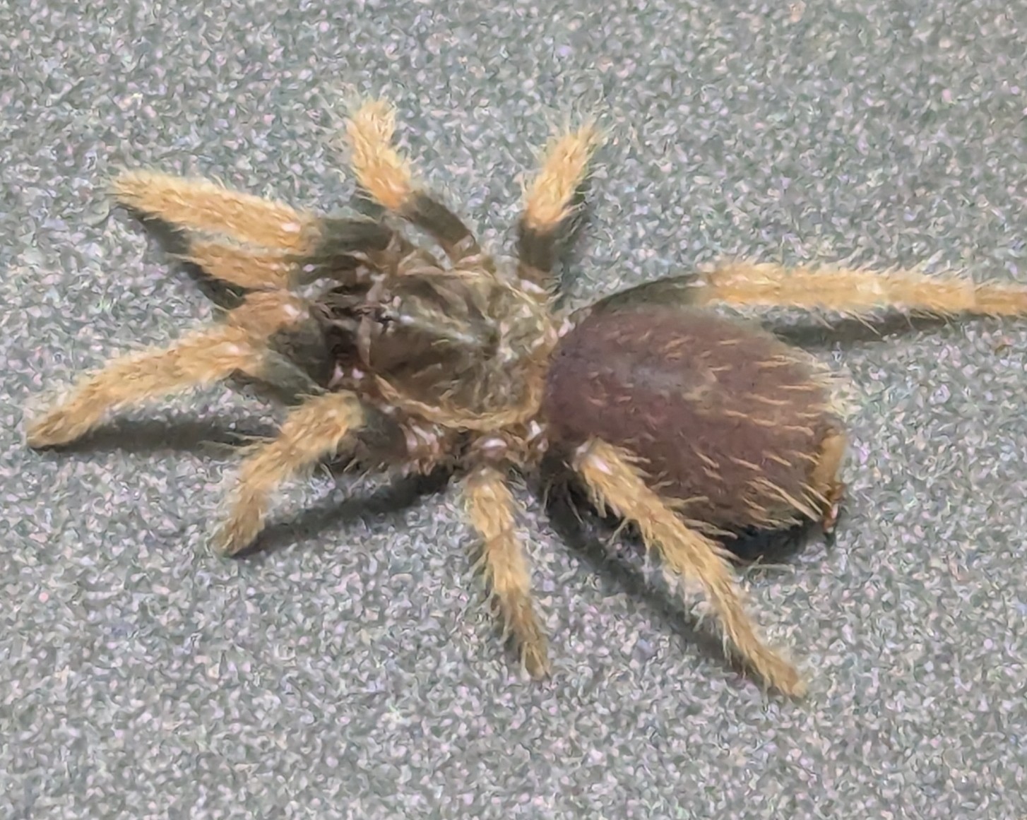 | テラホシダエsp.ラウタ ペルー・フニンのラウタ近郊で採集された属種共に不明の小型タランチュラで地味ながら甲羅に近い部分にパッチが入ります。外見は昔流通していたAgnostopelma味を感じますが分布はコロンビア中部で腹部にパッチもなくsp.ラウタの採集地とはかなり離れます。、 |